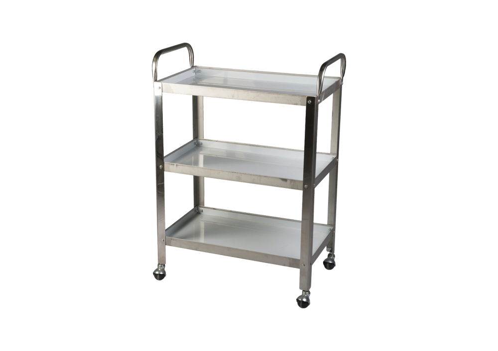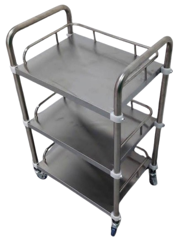 • عدد الأرفف: 3 أرفف قابلة للتعديل والتنظيم، توفر مساحة واسعة لتخزين الأدوات الجراحية والمعدات الطبية الأساسية.